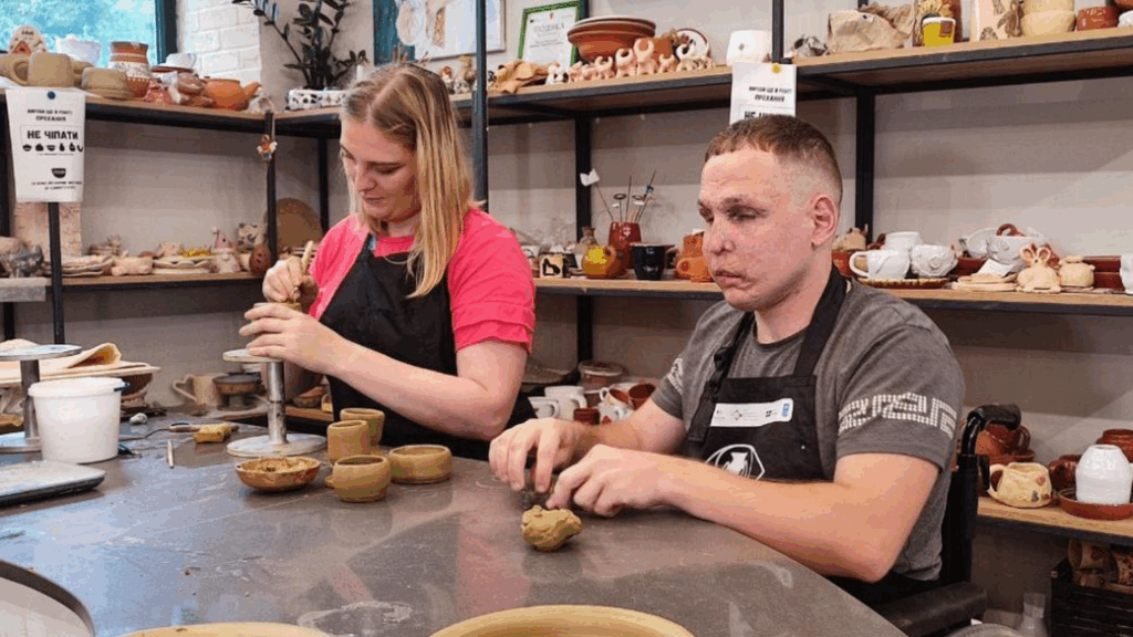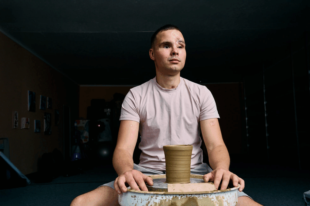 Антон Кузьо: після поранення та втрати зору Антон пройшов важку реабілітацію, але завдяки гончарству зміг знайти новий сенс у житті. Він вже створив сотні виробів і активно навчає інших ветеранів.