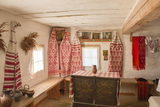 Рушник — це чи не найголовніший атрибут української оселі. Він супроводжував людину від народження до останньої межі. Червоний колір символізував вогонь та життєву енергію, а біле полотно — чистоту помислів. Геометричні орнаменти (ромби з крапкою всередині) позначали засіяне поле та добробут, а восьмикутна зірка (Алатир) вважалася символом всесвіту.